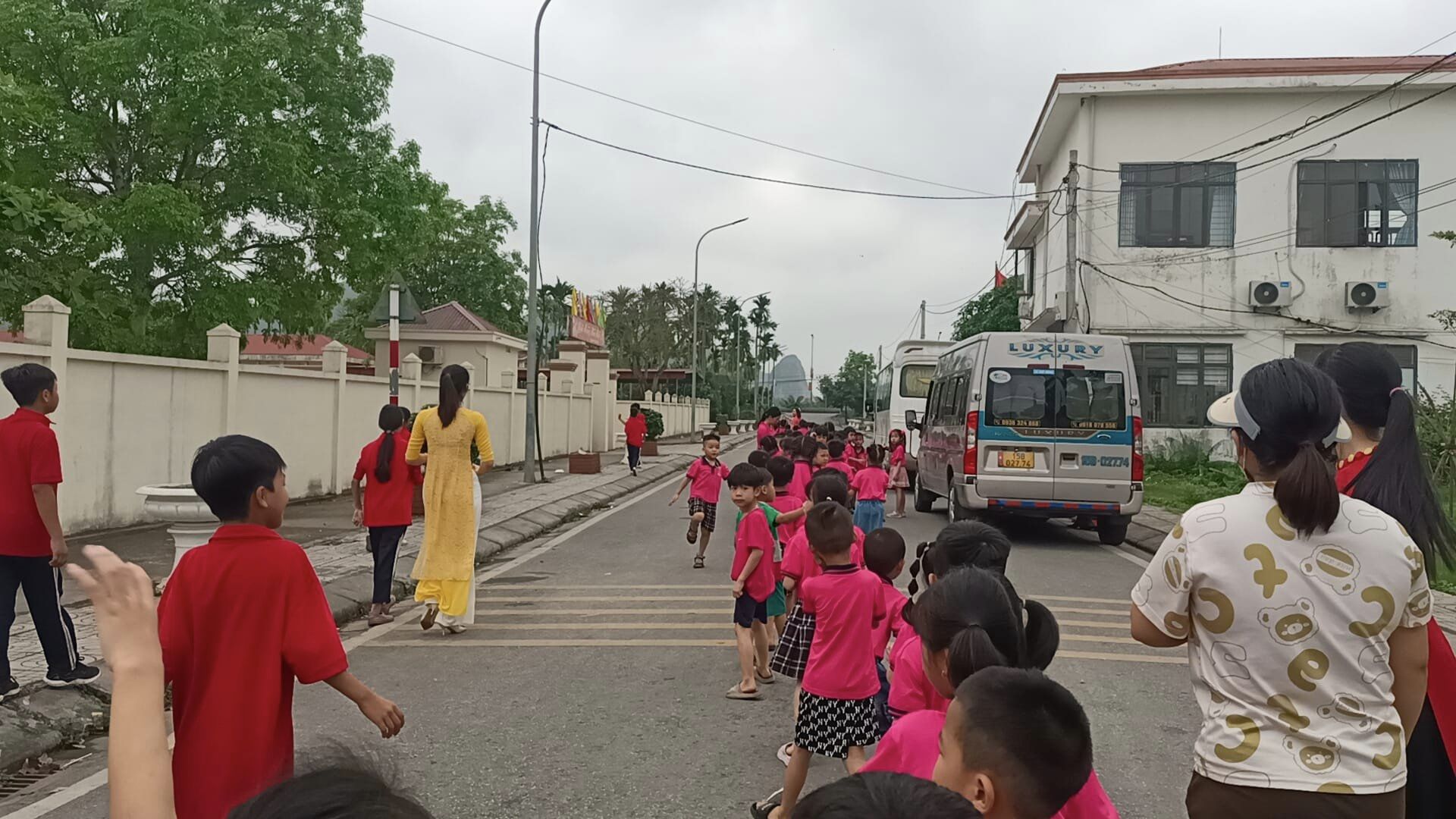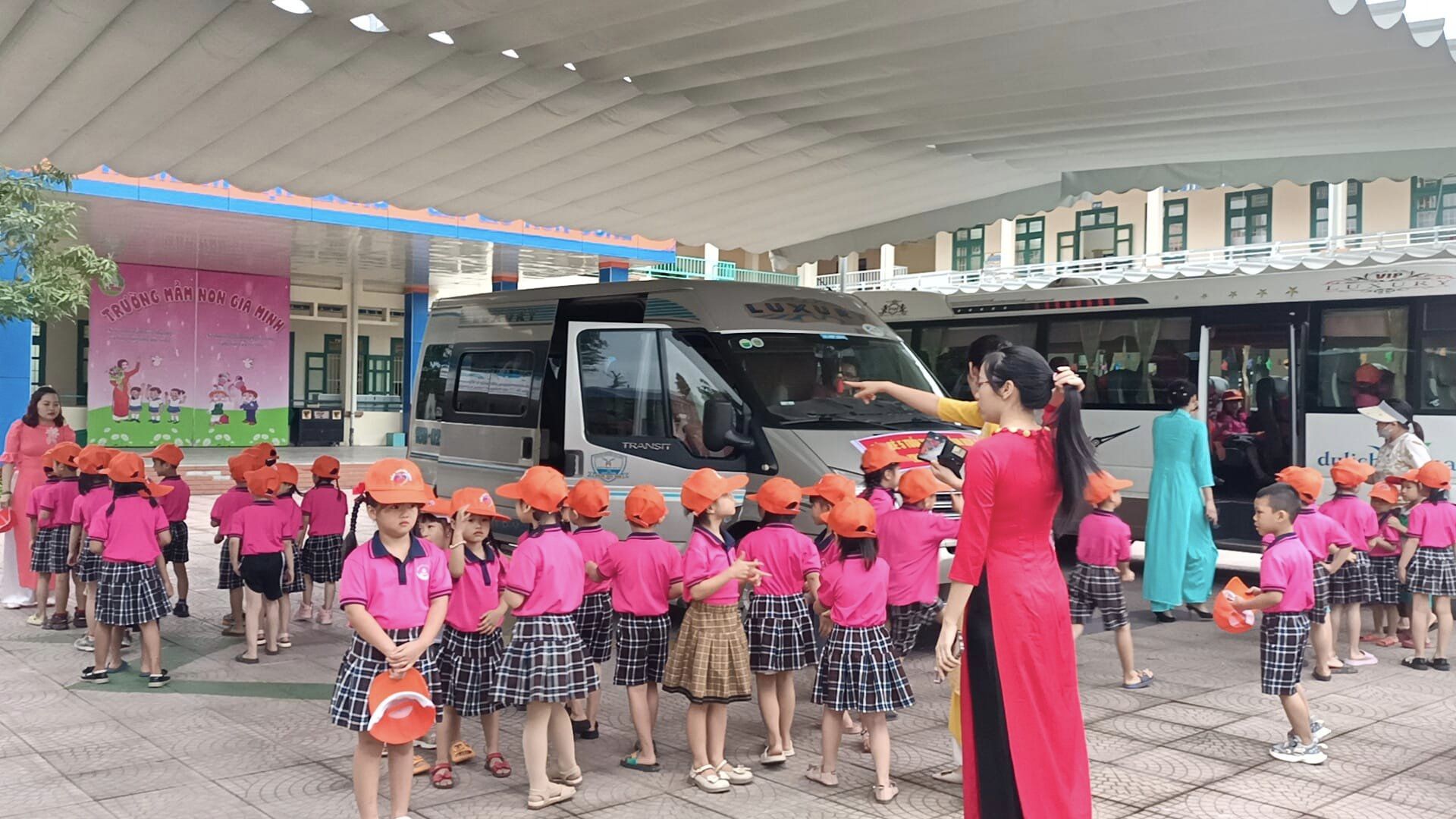 đã tập trung đầy đủ với trang phục gọn gàng, điều kiện đầy đủ để chuẩn bị cho buổi thăm quan, chuẩn bị hành trình đến với ngôi trường thứ 2 các con sẽ được học tập khi kết thúc thời gian nghỉ hè.