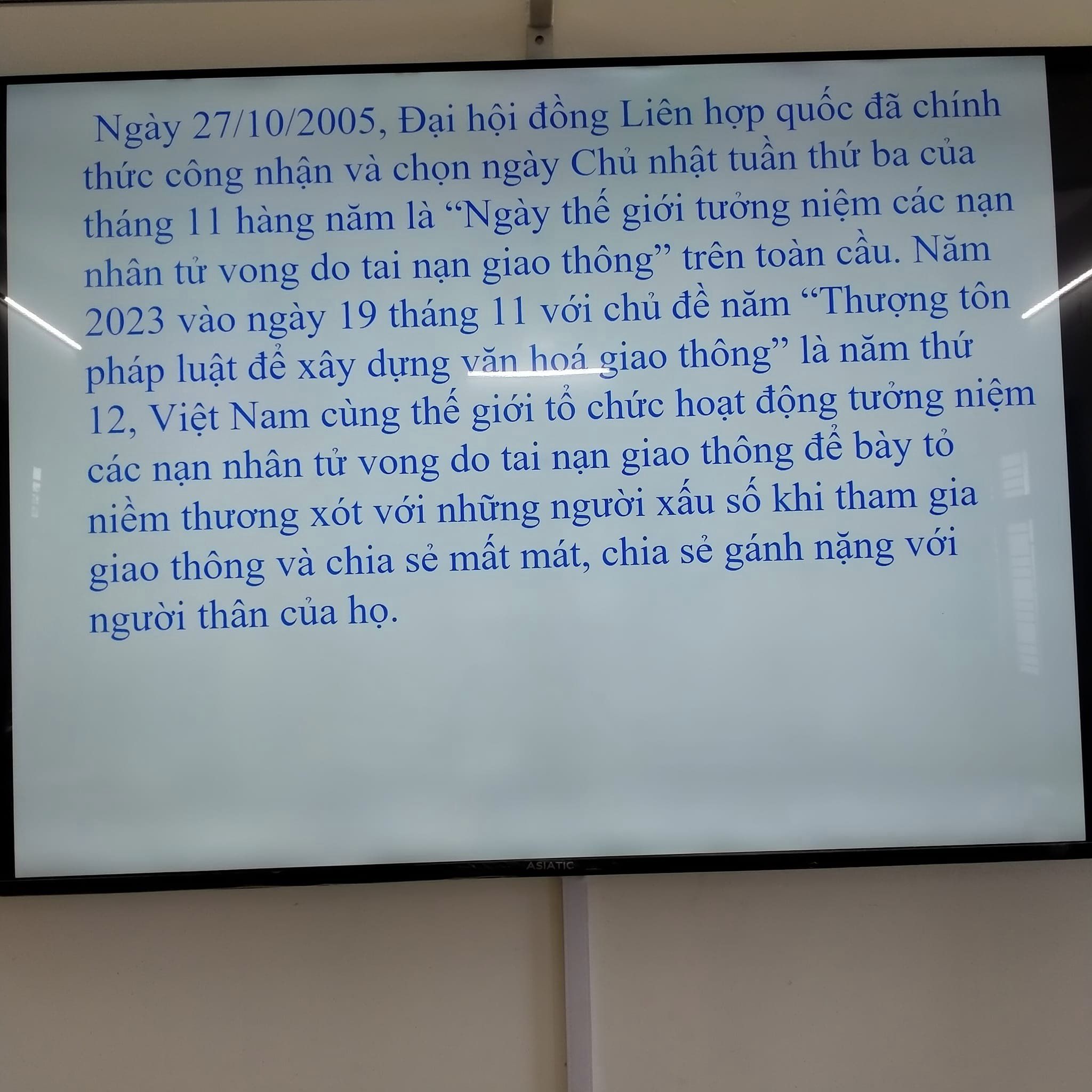 cho cán bộ, giáo viên, nhân viên, học sinh về nguy cơ, hậu quả tai nạn giao thông và biện pháp phòng tránh tai nạn giao thông, tuyên truyền các thông điệp về An toàn giao thông từ đó nâng cao trách nhiệm, ý thức của người tham gia giao thông;