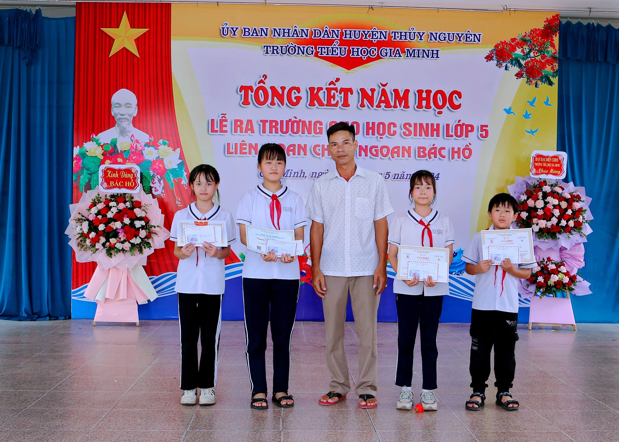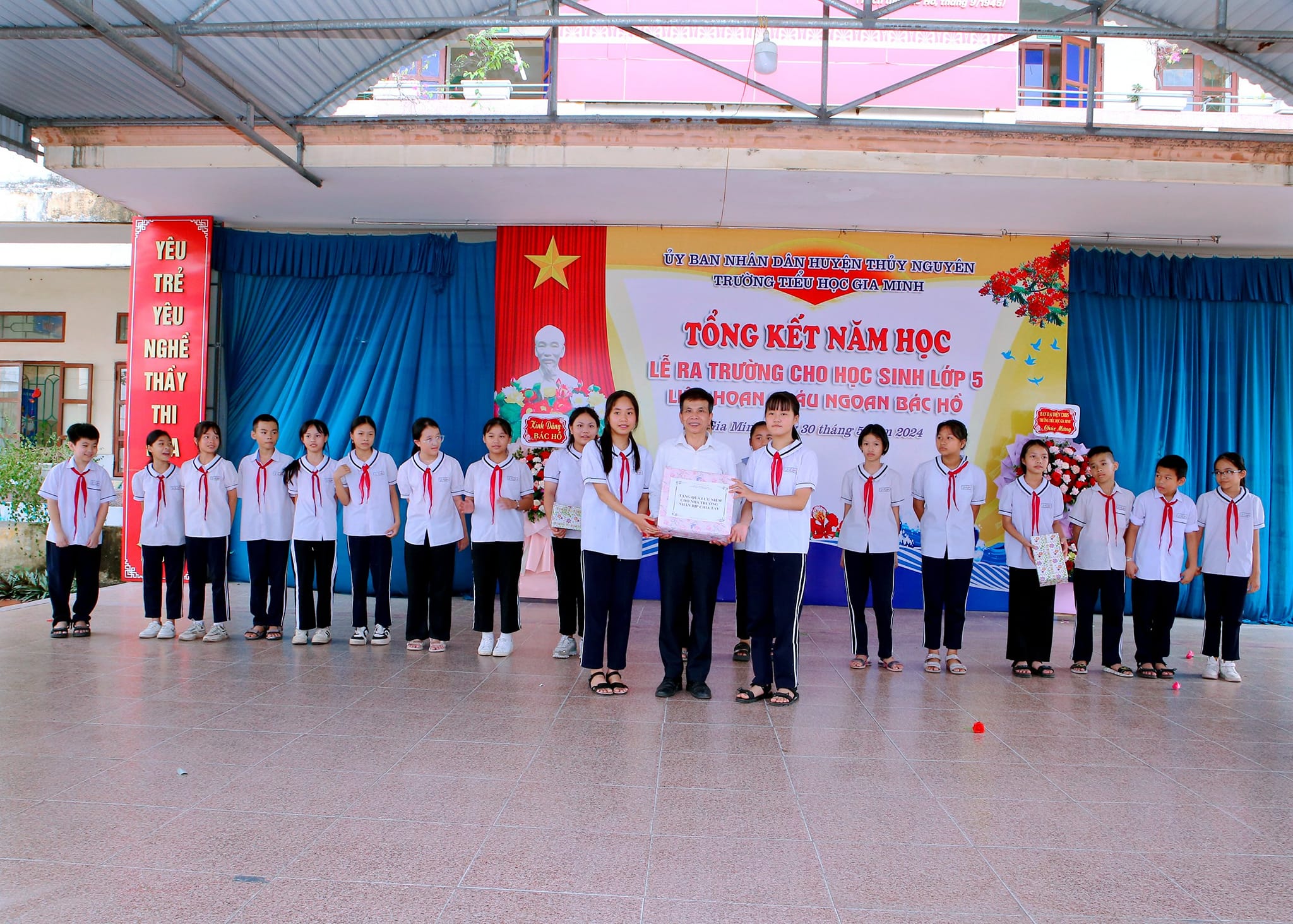Mùa hè đến, báo hiệu một năm học đã qua đi với rất nhiều thành tích đáng tự hào. Trong năm học 2023 – 2024 vừa qua, với sự cố gắng nỗ lực của các em học sinh và sự ân cần nhiệt huyết của các thầy cô giáo trường TH Gia Minh đã gặt hái được nhiều thành tích. Để ghi nhận và biểu dương những thành tích ấy, sáng ngày 30/5/2024 trường TH Gia Minh tổ chức "Lễ tổng kết năm học - Liên hoan cháu ngoan Bác Hồ - Chia tay học sinh lớp 5".