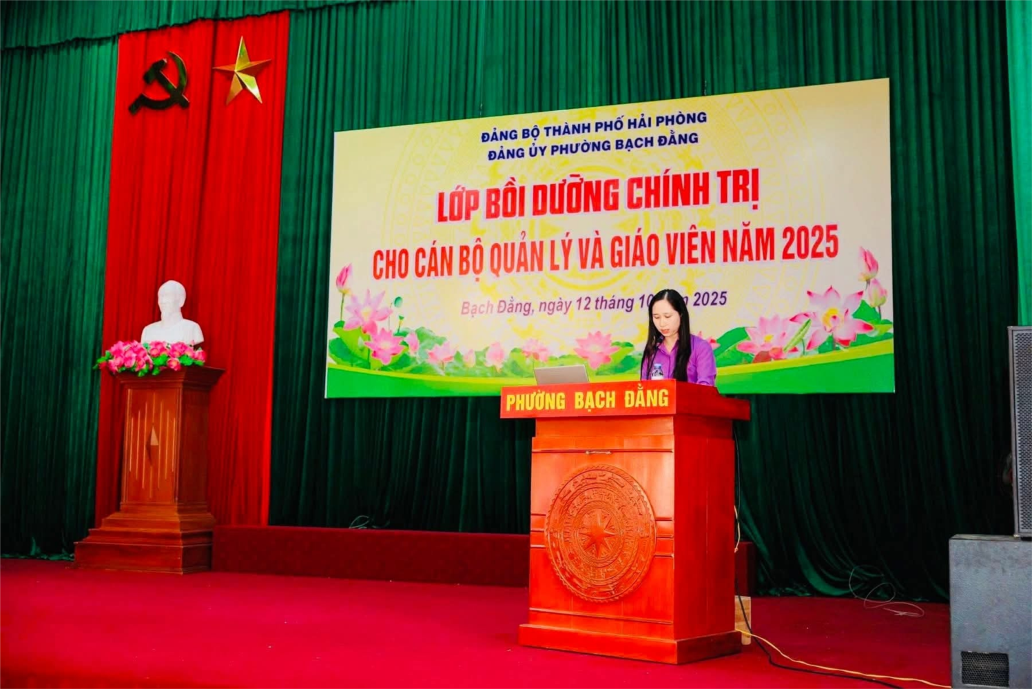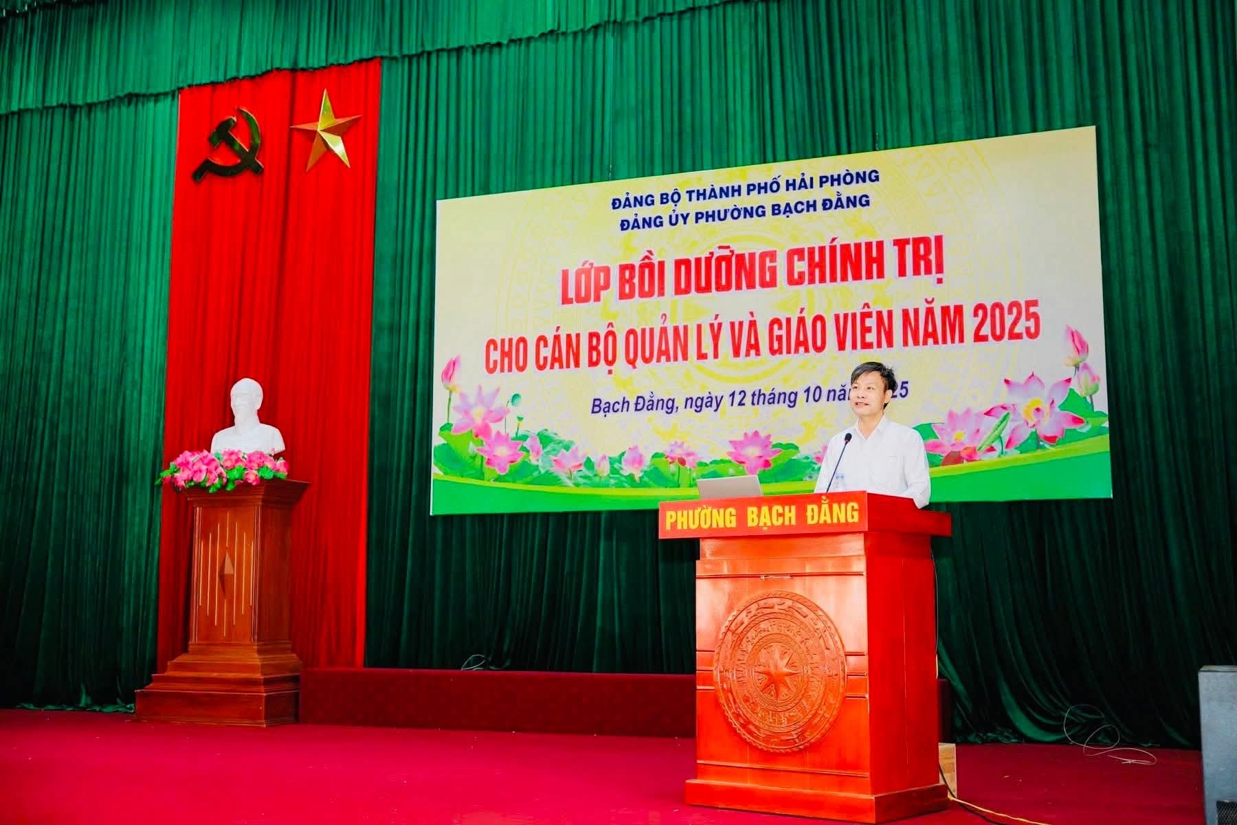 Thực hiện Hướng dẫn số 01-HD/BTGDVTU ngày 10/7/2025 của Ban Tuyên giáo và Dân vận Thành ủy, cùng Kế hoạch bồi dưỡng chính trị năm 2025 của Ban Thường vụ Đảng ủy phường Bạch Đằng. Sáng 12/10/2025 đội ngũ cán bộ quản lý, giáo viên các trường học trên địa bàn phường đã tích cực tham gia lớp bồi dưỡng chính trị hè năm 2025 với tinh thần nghiêm túc, trách nhiệm và cầu thị.
