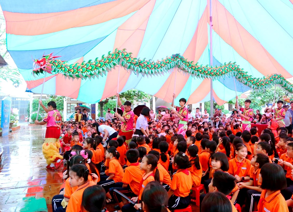 ☘️Chiều ngày 28/9/2023 (14/8 âm lịch) trường Tiểu học Gia Minh tổ chức chuyên đề vui tết trung thu với chủ đề : "LỒNG ĐÈN THẮP SÁNG ƯỚC MƠ". Đây là dịp để các em thiếu nhi được tìm hiểu về những nét truyền thống của dân tộc, được học tập, vui chơi, giao lưu cùng chị Hằng chú Cuội, được xem múa lân, phá cỗ, rước đèn.... 🍀Về dự và động viên chuyên đề Liên đội vinh dự được đón tiếp các vị đại biểu: - Đại biểu huyện: Ông Nguyễn Bá Quế - Phó Chủ tịch Liên đoàn lao động huyện Thủy Nguyên. - Đại biểu xã : Ông Cù Văn Huynh - Phó bí thư TT Đảng Ủy xã Gia Minh cùng các ông bà đại diện cho các ban ngành, đoàn thể địa phương. - Về dự và đưa tin chuyên đề có bà Bùi Thị Liên - cán bộ cổng Thông tin điện tử huyện Thủy Nguyên. 🍀Để có được thành công của chuyên đề hôm nay phải kể tới sự đồng hành ủng hộ của các bậc phụ huynh, các thầy cô giáo và 384 em học sinh toàn Liên đội đã không quản ngại trời mưa để cho các con 1 ngày tết thật ấm áp, ý nghĩa. ♥️Tại chuyên đề Liên đoàn lao động huyện Thủy Nguyên đã tặng 15 suất quà cho 15 học sinh là con giáo viên và học sinh có hoàn cảnh khó khăn. ♥️Ban đại diện cha mẹ Hs trường cũng dành tặng 10 suất quà cho 10 học sinh nghèo, vươn lên vượt khó. ♥️Thay mặt tập thể các thầy cô trong trường xin trân trọng cảm ơn các đồng chí lãnh đạo, các bậc Phụ huynh đã về dự và chung vui cùng các con nhân dịp Tết trung thu. ♥️Sau đây xin kính mời phụ huynh và các con cùng xem lại 1 số hình ảnh của nhà trường: