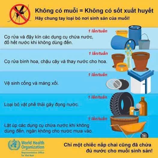 Tìm và diệt lăng quăng – Thay nước – Thả cá – Thu gom rác – Tự bảo vệ mình khỏi muỗi đốt