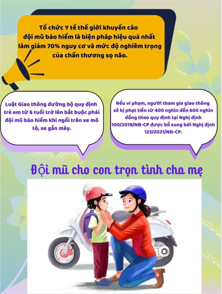 👉Nhắc nhở những bậc làm cha, làm mẹ hãy đội mũ bảo hiểm cho con khi tham gia giao thông.