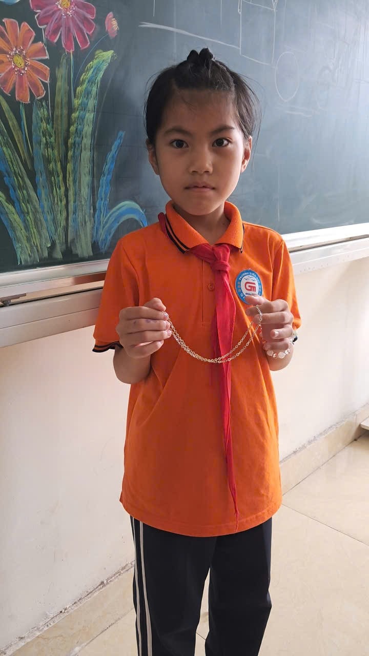 💖 Hôm nay, Liên đội Tiểu học Gia Minh vui mừng tuyên dương bạn Nguyễn Thanh Trúc – học sinh lớp 4A1. Trên đường đến lớp, bạn Trúc đã nhặt được một sợi dây chuyền và trung thực mang nộp lại cho cô giáo để tìm người đánh rơi.