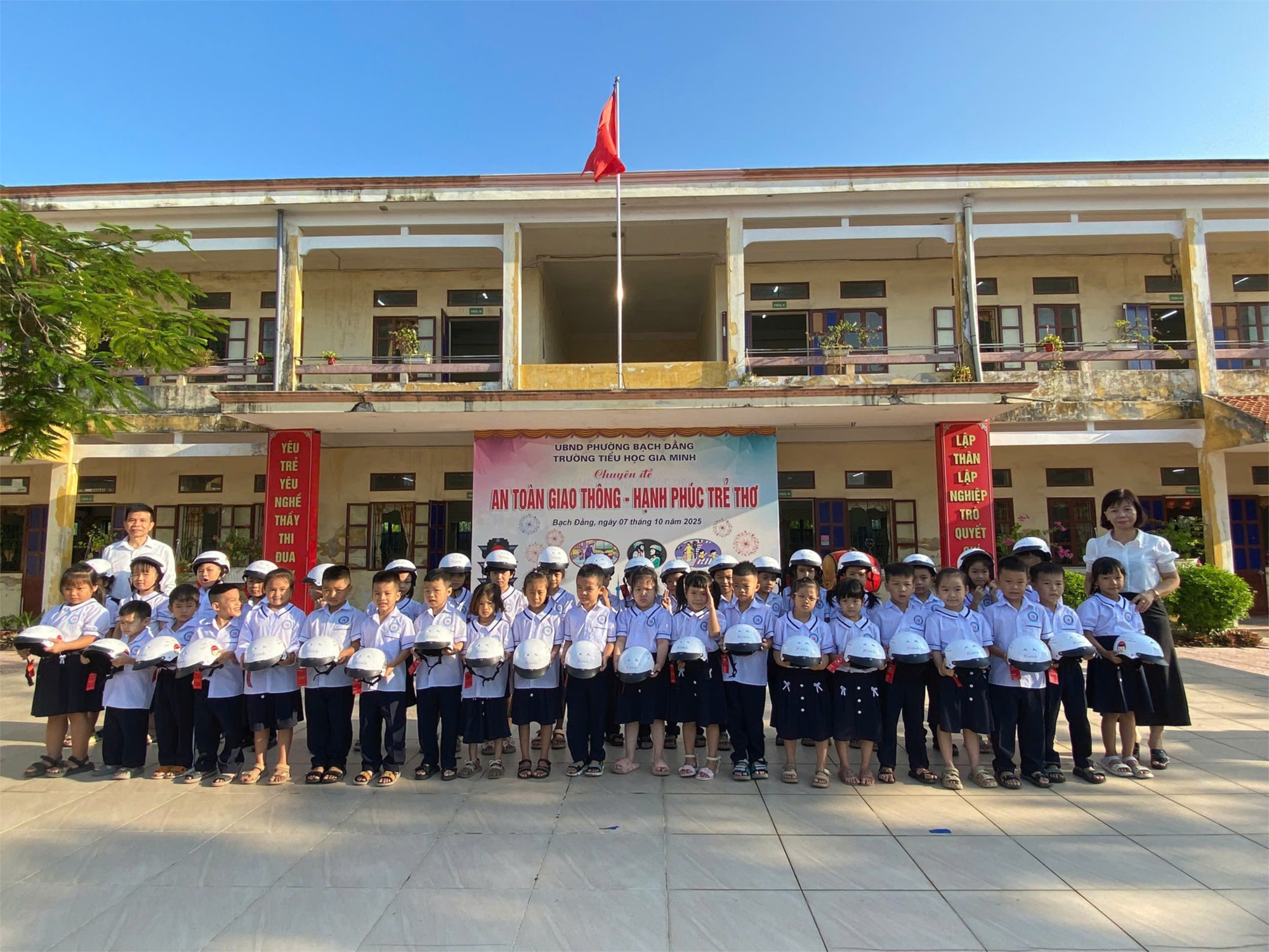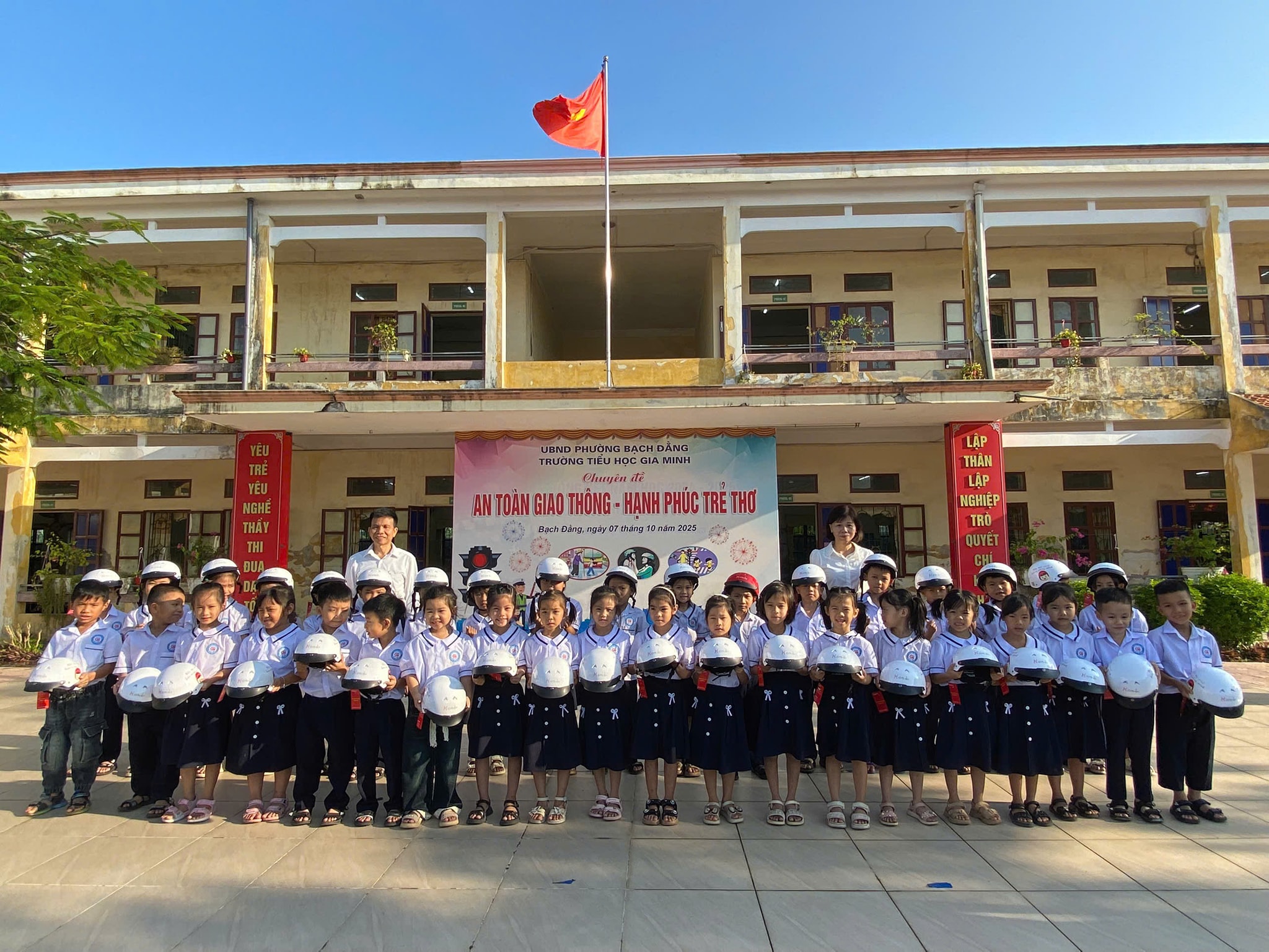 Sáng nay, tại Trường Tiểu học Gia Minh đại diện Ban giám hiệu nhà trường phối hợp Công ty Honda Việt Nam đã tổ chức chương trình “Trao tặng mũ bảo hiểm cho học sinh lớp 1 – An toàn giao thông cho nụ cười trẻ thơ” năm học 2025–2026.