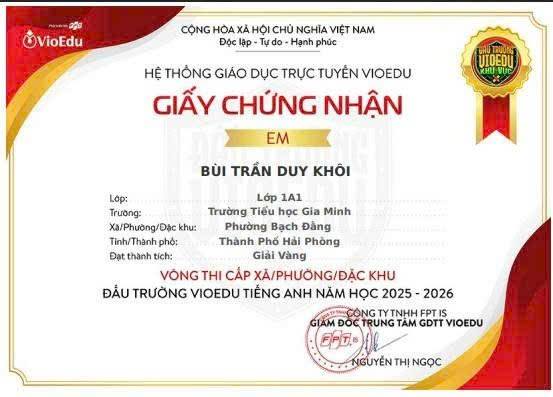 Bùi Trần Duy Khôi (lớp 1A1) – 🥇 Giải Vàng